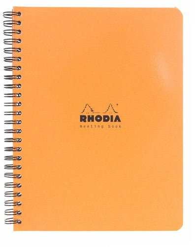 This Rhodia wire-bound meeting notebook features 80 sheets of extra white 80g acid-free, pH neutral paper and a coated and waterproof cover. Sheets are micro-perforated for easy removal. Pre-printed pages with Date + Notes + Action.